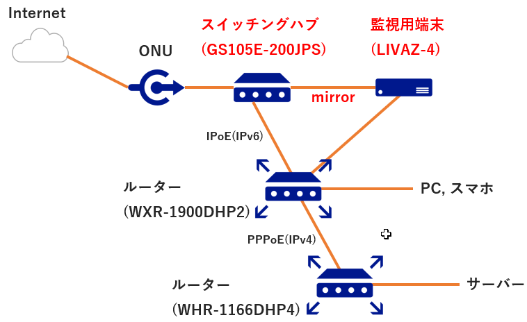 本構成には関係ありませんが、図のルーター構成が気になる場合は以下を参照してください。
