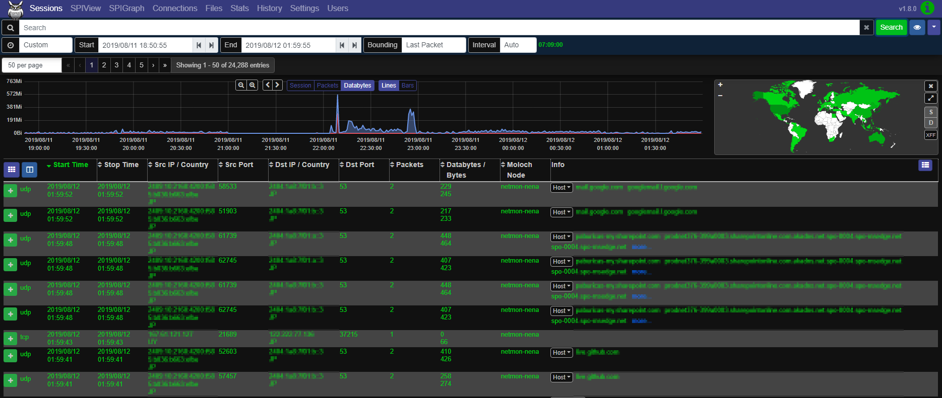 常時ネットワークモニターのMolochを導入し、インターネット-LAN間のIN/OUTをモニターします。