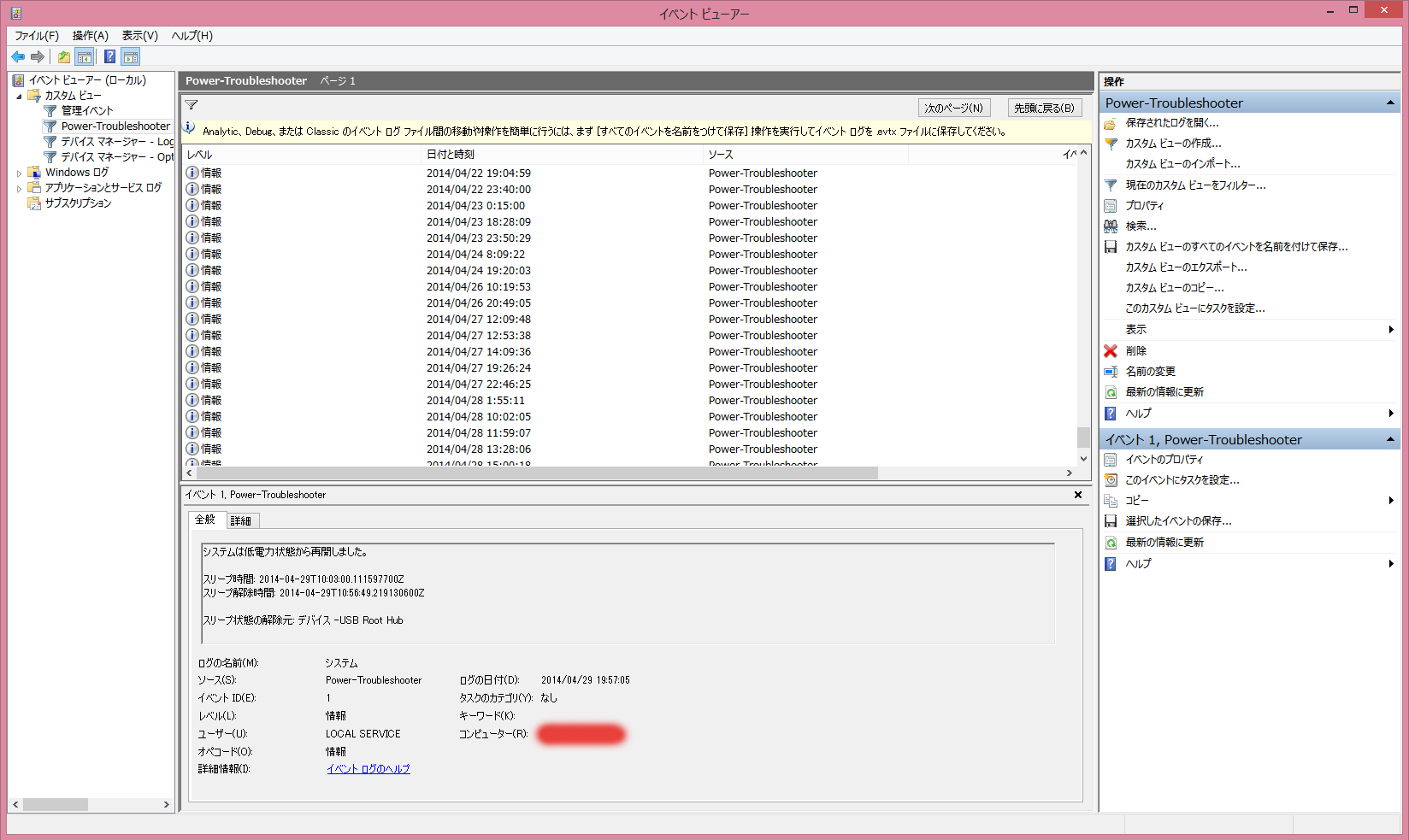 ソースを[Power-Troubleshooter]としてフィルタすれば見やすいです。