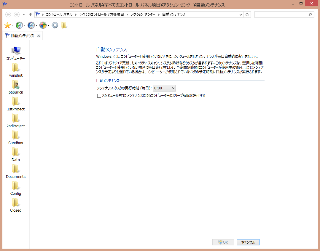[自動メンテナンス]を開き、[スケジュールされたメンテナンスによるコンピュータのスリープ解除を許可する]を許容できるのであればオフにします。