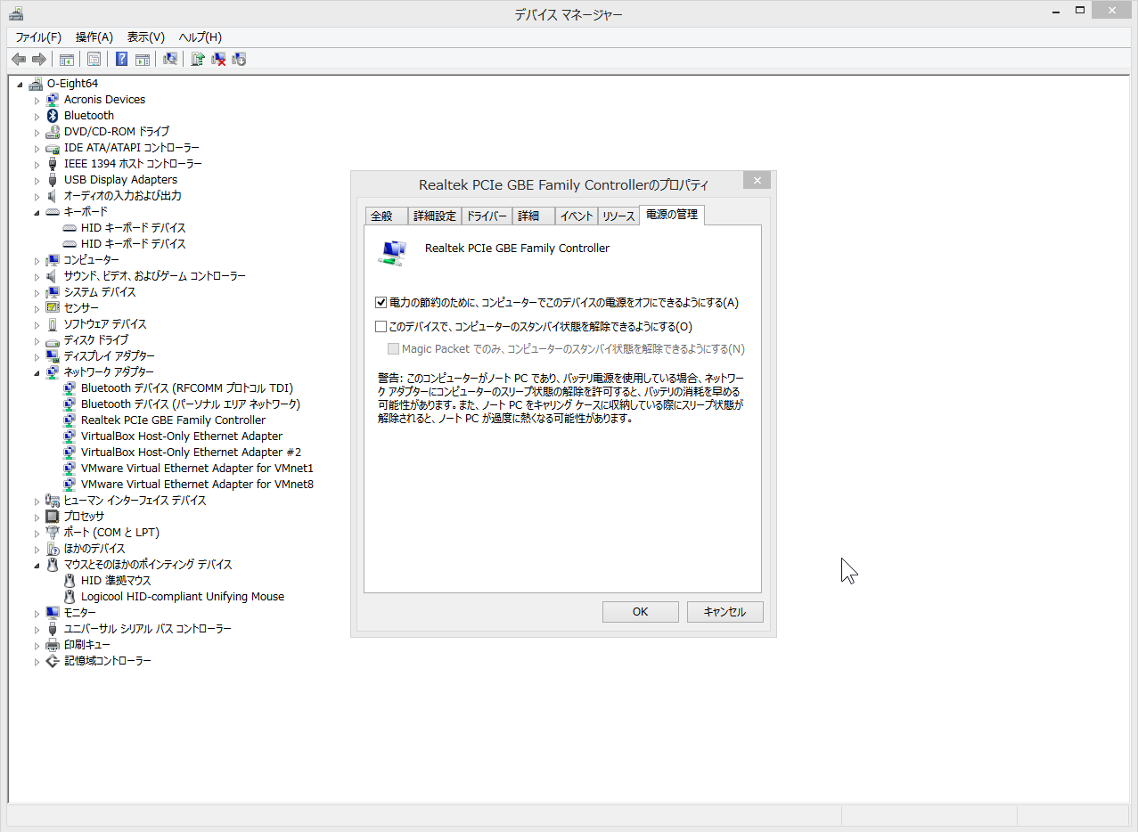 デバイスマネージャからNICのプロパティを開き、[電源の管理]から、[このデバイスで、コンピュータのスタンバイ状態を解除できるようにする]を許容できるのであればオフにします。